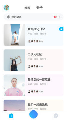 3、拥有各种风格的互动圈子,比如二次元、日记、流行、背包客等,内容也多样;