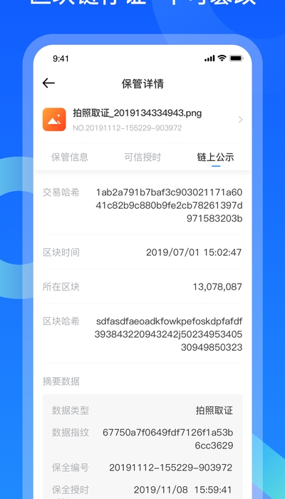 链上存证,数据防篡改:结合区块链技术,数据永久保管;