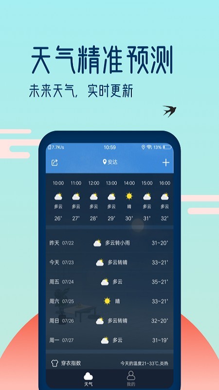 未来天气早知道:15天预报:可提前查看15天内的天气实时变化。