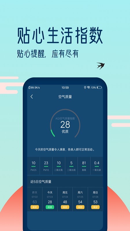 语音播报天气:甜美语音为你播报每日天气,让你解放双眼,并为上岁数的老人增加了便捷。