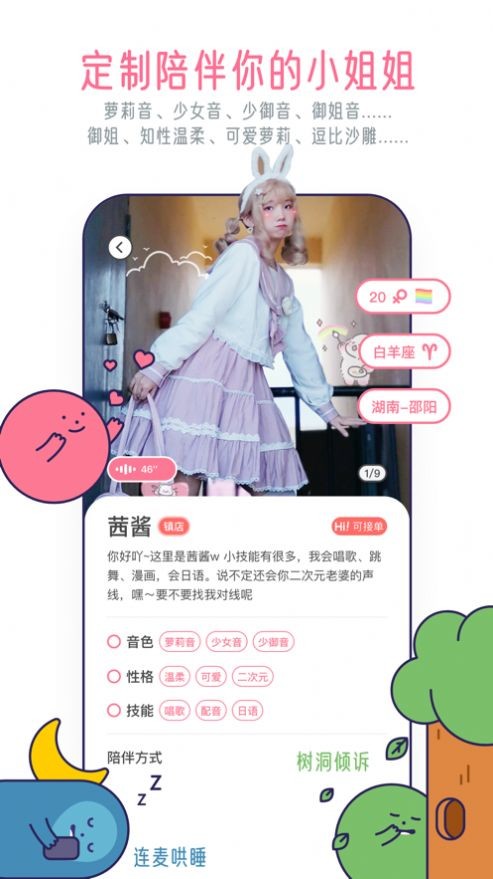 甜味陪伴专属口令是一款很不错的手机在线交友软件,这里有一系列非常有趣的玩法,如果你感兴趣的话也是可以轻松体验的哦,首先你可以下载注册登录,这样的话就可以认识到更多的朋友,以后也会一直不断的更新哦,之后也能够给大家带来更好的体验,APP让各位女性同胞们可以切实的绕过各种奇怪的男性用户,在这里你软弱需要陪伴的时候,我们姐妹为你撑腰,分享你日常生活中喜悦悲伤,快来麦氪派站下载体验吧。