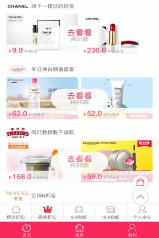 3、品牌特卖、超级返、限时秒杀、精选品质大牌,