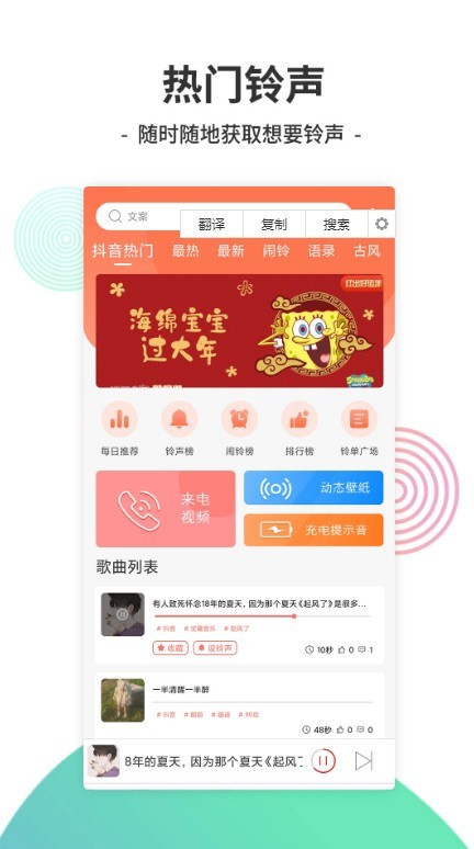 1.最热铃声推荐,当下最热门的手机铃声可以为每个人自由使用。