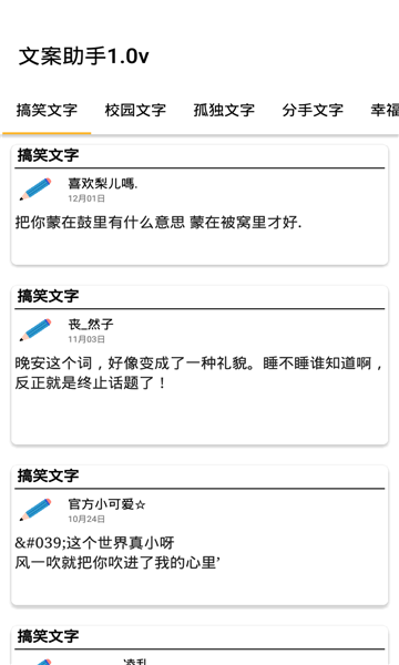 2、每天都有人在平台分享优质文案,随时可欣赏喜欢的文案;