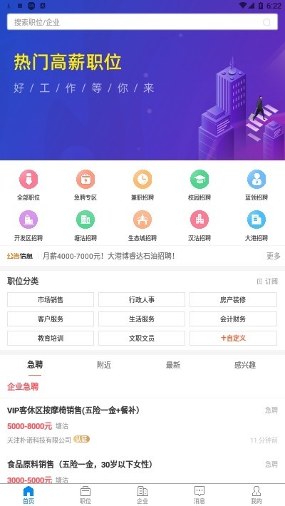 1、致力于为个人求职者提供滨海新区最新最全最准确的招聘信息,帮助求职者与企业搭建最佳的人才招募和人才培养渠道。