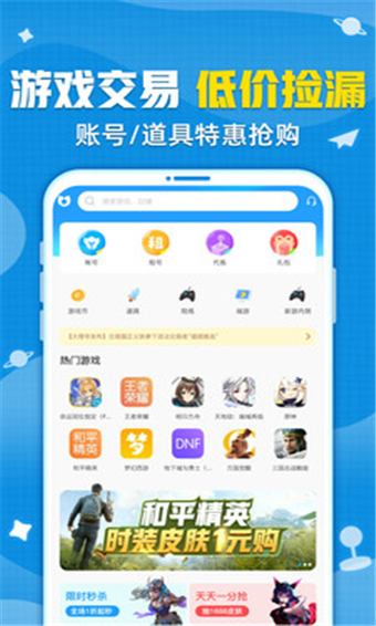 3、为热爱游戏的你提供账号交易、账号回收、代练、陪玩等服务,同时还提供礼包,道具等福利;