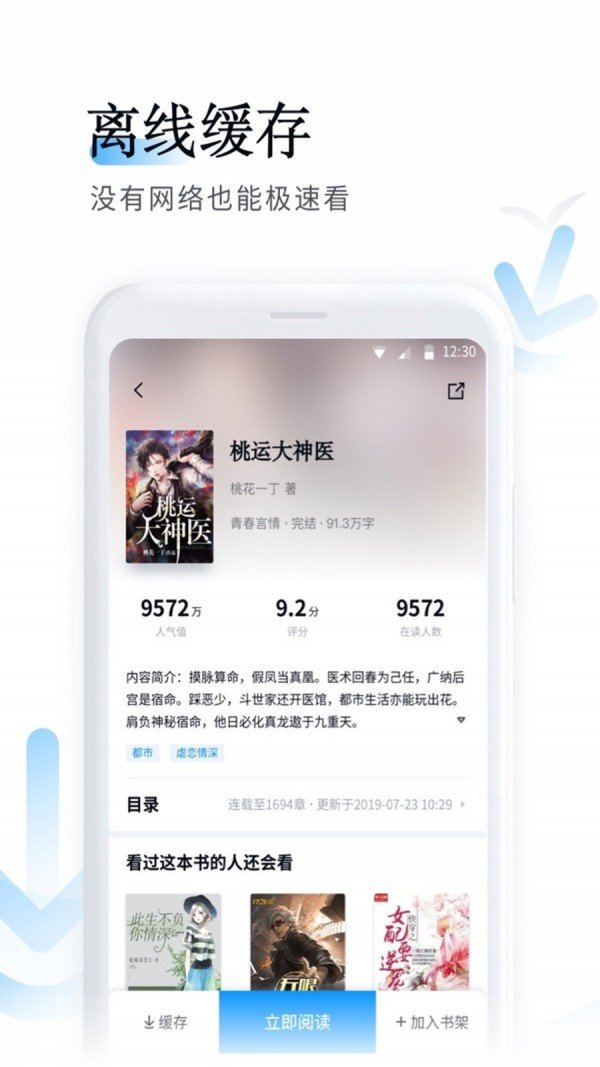 1、畅享离线阅读,WI-FI环境下自动下载更新章节,随时随地无忧看书;