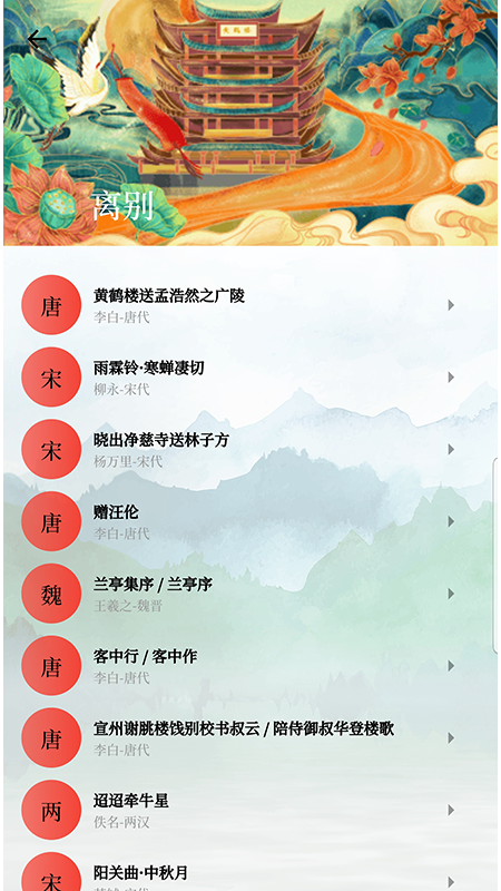 2、每一首古诗词都有提供诗词朗读音频,随时可以进行音频播放收听;