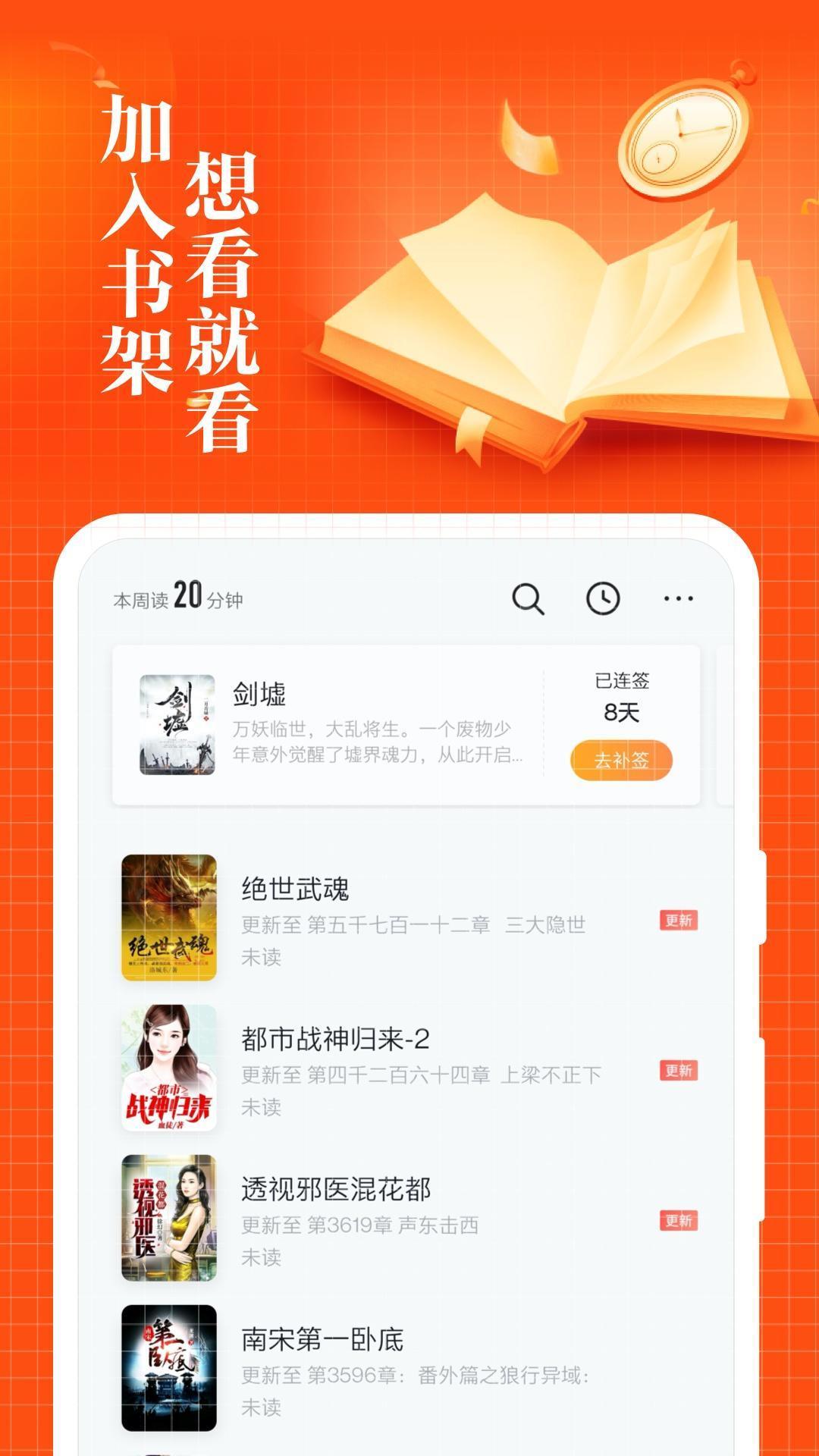 3、不管是各类网络小说还是出版书籍都有,喜欢的小说都添加到书架中;