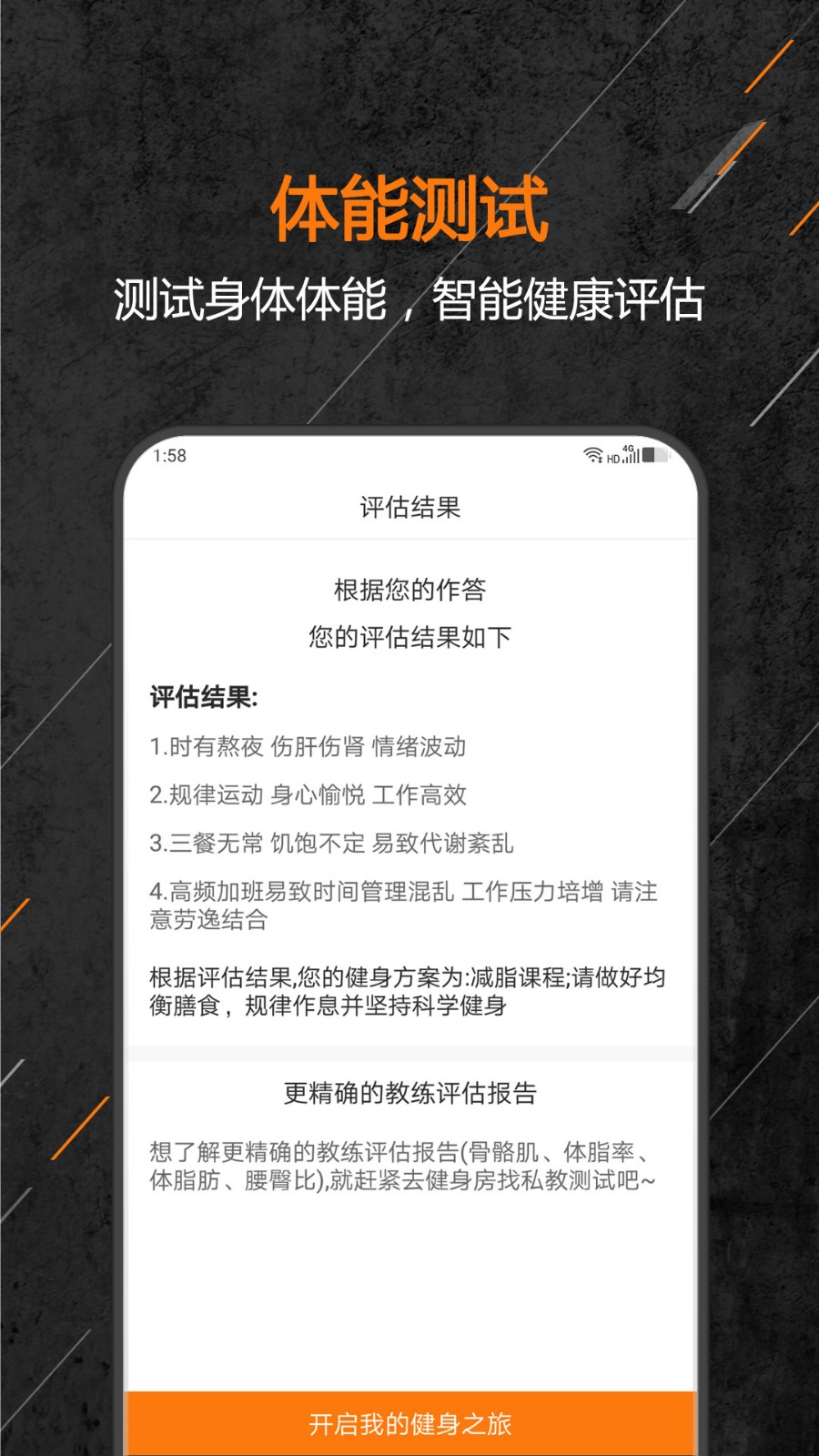1.为用户们提供各项身体指数评估报告,详细记录您的健身进展