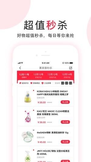 【限时折扣】每天定时推出大力度限时打折商品。提前加入购物车,不错过任何一个优惠。