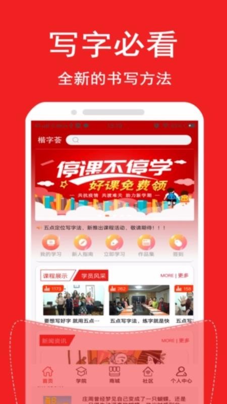 楷字荟app下载,一款以楷书学习为主题打造的在线教学和教育物品采购的综合社区,来楷字荟app不仅有专业优质的楷书学习资源,还有丰富多样的学习用品,欢迎下载。同时楷字荟是一款专门为中小学生们推出的练字软件,软件内有超多的各种书法字体提供,让用户们能够选择自己喜欢的那款字体来练习,让你使用手机就能够轻松的练字,快来下载使用吧!