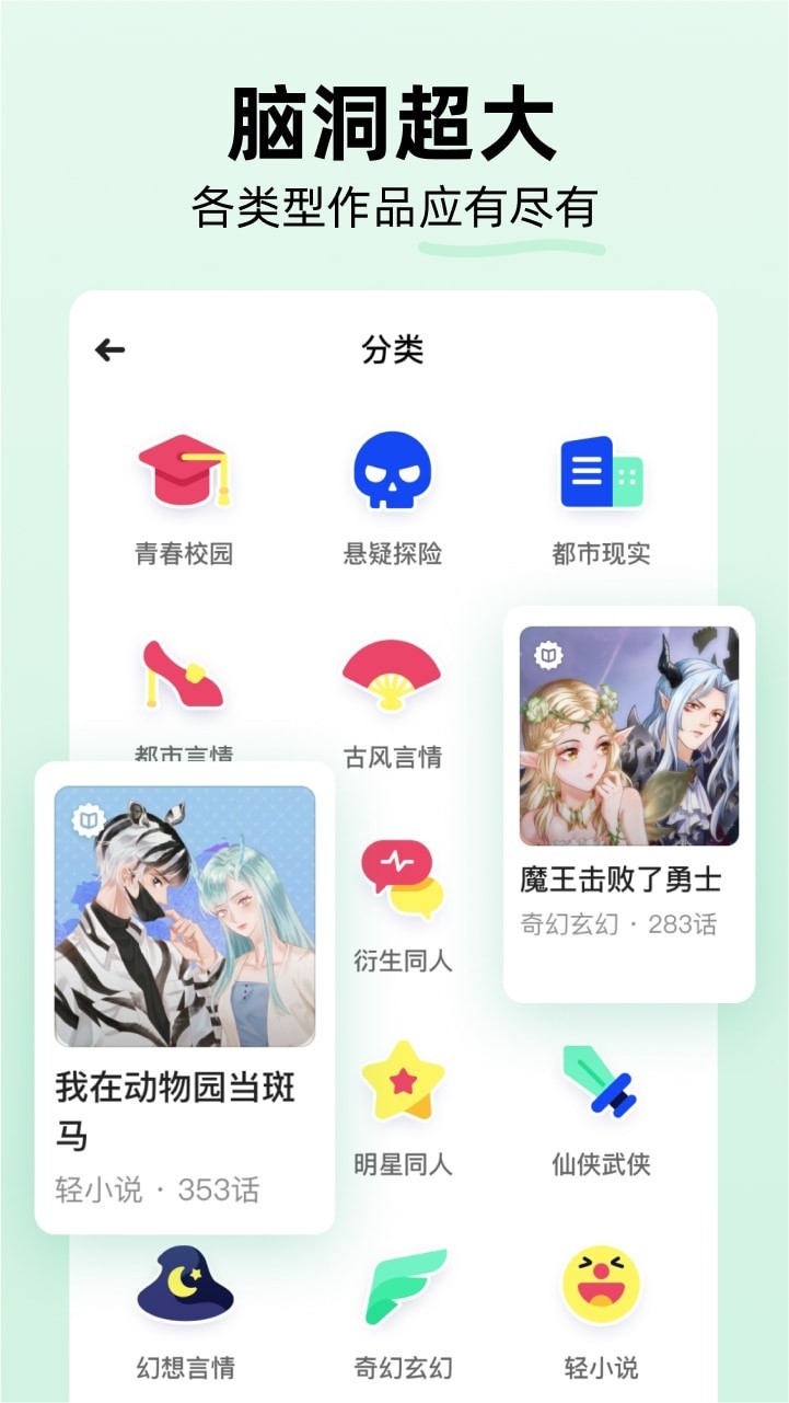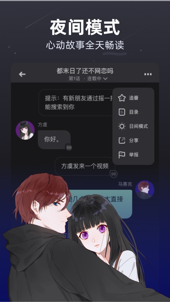 一键邀请人创作小说集,边聊天边创作,灵感层出不穷;晚间阅读模式维护双眼眼睛视力。