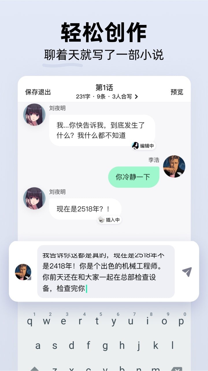 你可以邀请好友加入小说创作,支持多人合写再创作;