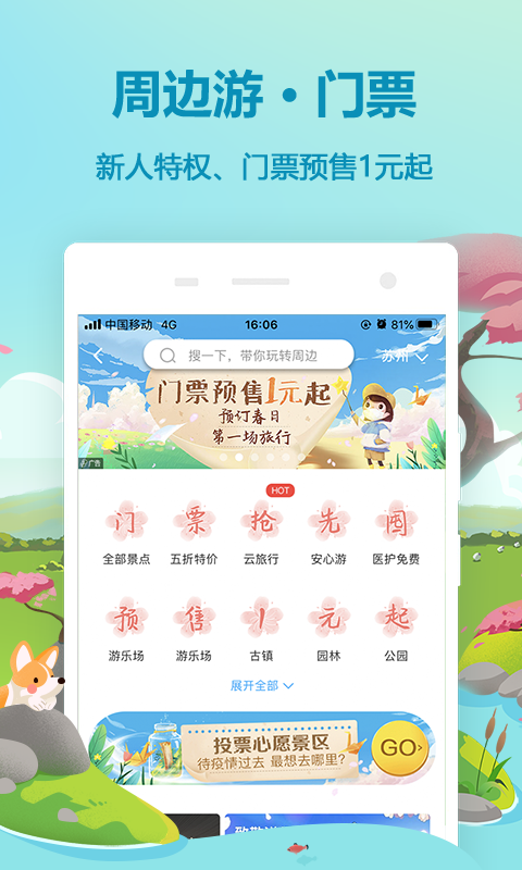 景点门票:[有票频道]免费获取景点门票!周周更新免费景点列表!快捷预订,订贵了还可申请赔付,赔付2倍差价,行程有变,随时可退,手机预订优惠更多,点评奖金1元提现;