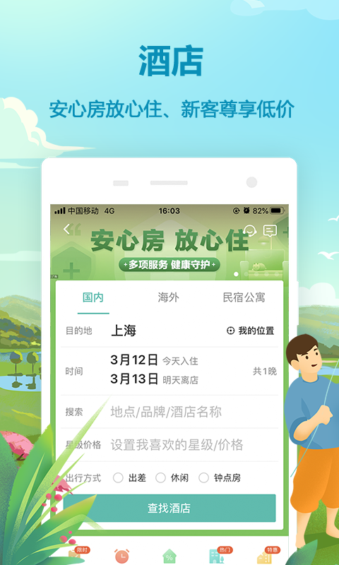 酒店:国内及港澳4万余家酒店预订,海量酒店房型照片以及真实住客的点评,入住发点评赢奖金,手机预订返得更多。
