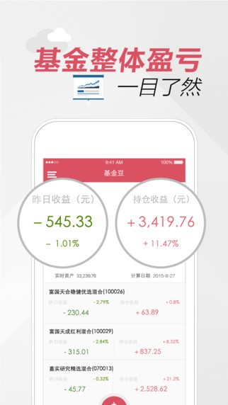 基金豆客户端app是一款新型的基金管理工具软件,提供了低门槛的资产配置服务,避免了用户短视和胡乱购买理财产品的行为,专业的基金分析师还会为你带来最优的理财产品,基金豆客户端的超级基金项目让你能够更简单更科学的获得基金收益,稳拿计划是超级基金中的一个策略,能够让你股债三七配置,享受持续增长的平稳收益,让你不用担心忽高忽低的收益乃至赔钱,让你的心脏不会剧烈运动;百灵计划则是其中的一个模型,通过准确的信号,变仓的迅速让你远离高风险,随时随地都不会赔钱。一键下单自动调仓,让你的基金购买从未如此简单,未来十年的投资理财必备工具现在就在你的眼前,还不赶紧下载使用。