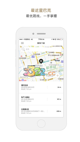快速、精确地发现离您最近的星巴克[ ]店,并为您指弓|路线,同时还有签到功能。