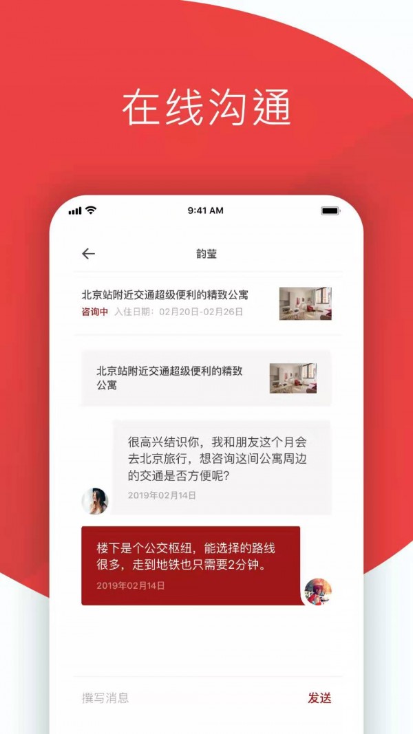 3.用户可以通过app与租客在线交流沟通,提高租客的入户体验。