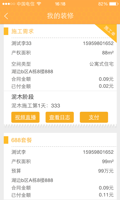 3.视屏直播:装修现场直播,一切公开透明,实时查看工地情况;