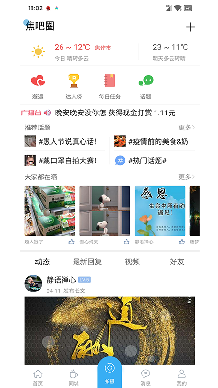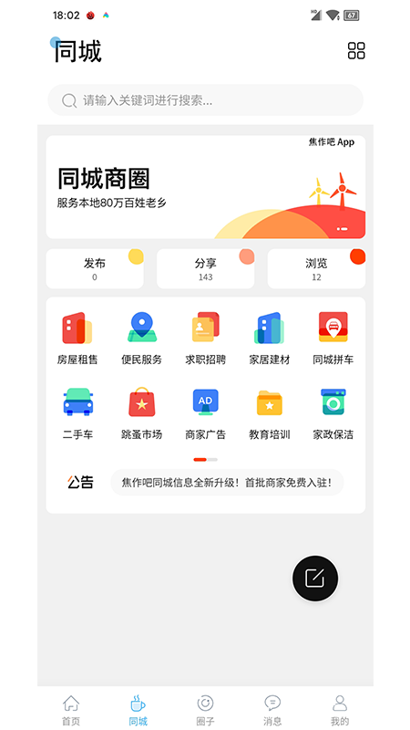 1.本地圈子:专为焦作人打造的本地圈子,支持在线交友、发帖子、晒心情、发视频等等;