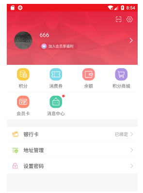 3、绑定会员卡,在线支付,活动查看,分享,搜索商品。