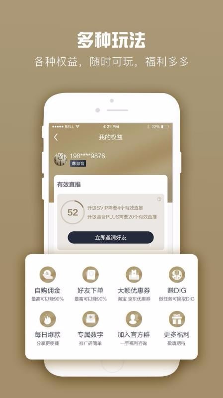 鼎音软件app让更多人应用更低的价钱选购更高品质的好货,考虑大家的购物要求;另外,大家能够在线上把提供的产品信息营销推广出来,为大家提前准备齐全的商品推广素材图片,可立即建立分享,将信息内容发送到朋友圈。