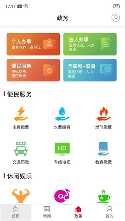 3、不仅可以阅读观看新闻资讯,还有很多的便民功能可以体验。