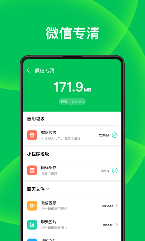 【微信、QQ专清】微信、QQ产生的图片、视频、语音...能智能清理