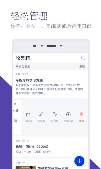 支持股票、书籍、链接、企业等多种类型知识内容,