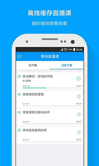 直播课离线下载:耗费流量少,高品质音质给您舒适的体验。所有课程任意缓存,随时随地想看就看。