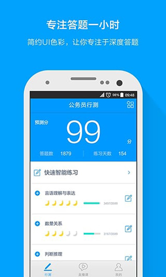 粉笔公考软件是款提供十余年国考和省考真题的公务员学习软件,软件同步提供全国真题与考试练习,答案解析均由授权名师共同编辑审核,专项练习,各个击破。全面覆盖多个考试类型:目标考试类型覆盖公务员,教师,司考三大类,根据考试目标提供不同的题库和直播课。海量题库资源,历年真题,模拟考试;还有在线直播课程,名师讲解,答疑解惑,考公务员更轻松。另外,粉笔公考题库还支持了160个考点,每一个考点都拥有专项练习,方便用户更加努力的击破他