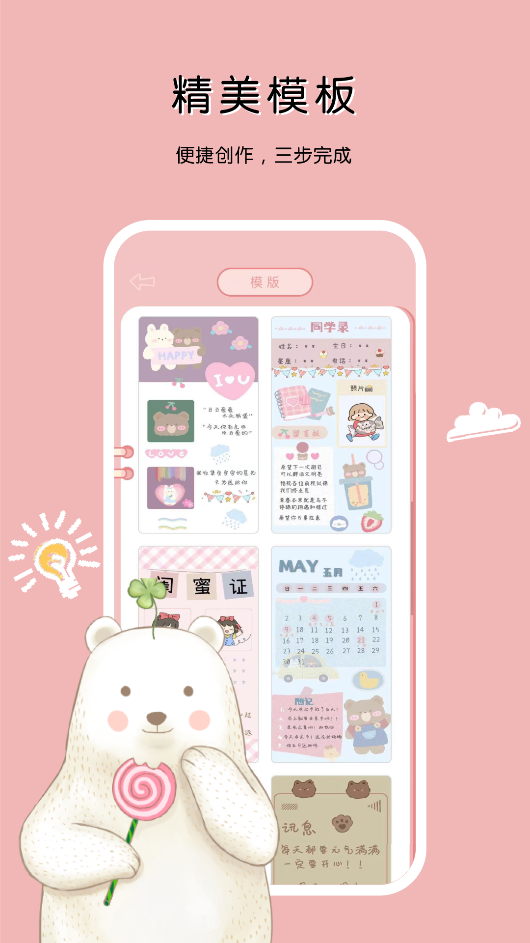2、汇集了大量流行的手账模板供用户免费使用,提供了多种可爱的贴纸和字体,大大美化了界面设计。