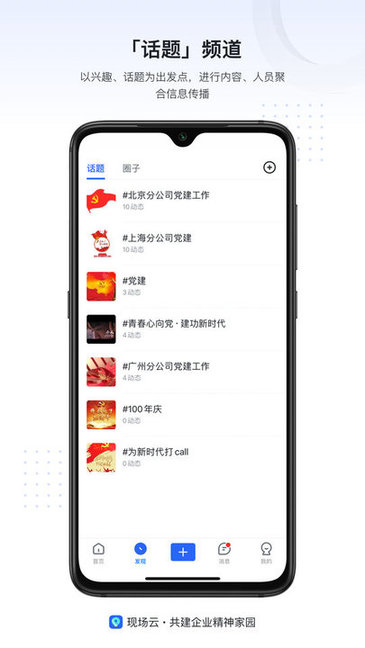 【现场频道】以同一组织为载体,及时实时进行发布内容呈现。