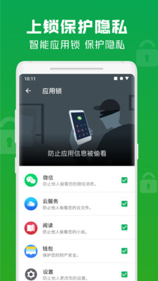 1、免受病毒的侵扰,更深度的保护你的手机使用,可以自动清理恶意病毒;