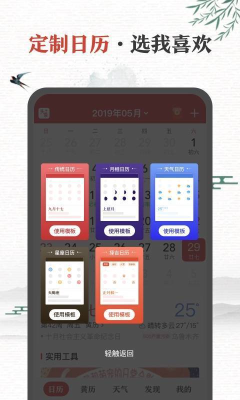 中华日历万年历APP是一款便捷的日历查看工具,能够用户提供准确的日历信息,通过APP就可以随时查看日历信息,随时掌握日历详情;将农历和公历完美结合在一起,让用户在查看日历信息的同时就可以获取对应的农历信息,非常的使用,并且界面的设计拥有中国风元素,完美符合中国人的审美,传承中国文化;快来下载体验吧。