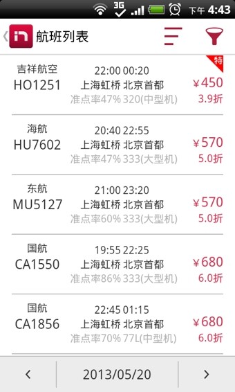 机票:提供国内各大航空公司实时机票查询与在线预订服务;