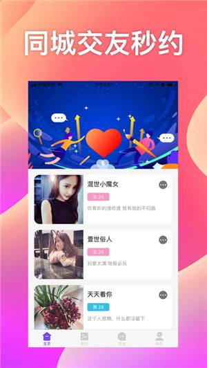 91交友app是一款非常有意思的新型成人交友聊天平台软件,大家可以在这里认识到各种有趣的朋友,扩展自己的交友圈,在平台里面会有很多的资源来提供给用户,全国各地的玩家这里都有,根据自己填写的资料,会智能推荐,快来平台上结交新朋友吧。感兴趣的单身小伙伴们快来下载体验吧。