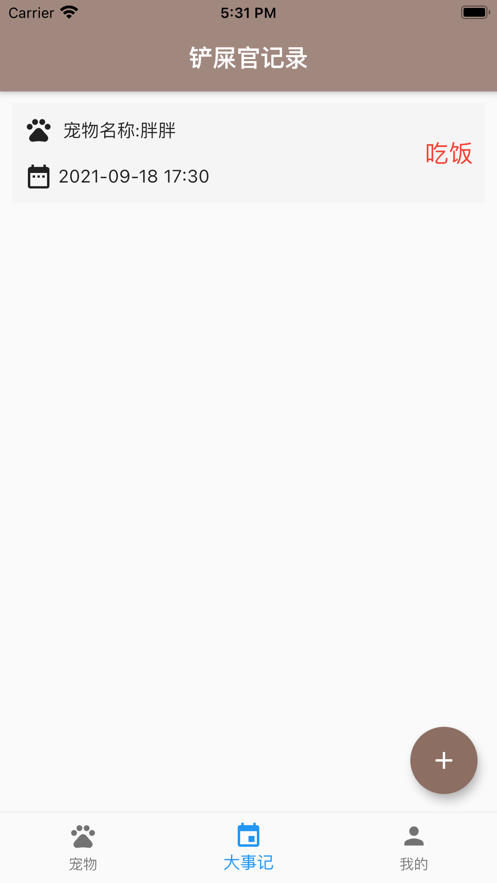 铲屎官的日常,记录宠物的生活日常,应用中涵盖了铲屎官的日常生活中常用事件(宠物铲屎、宠物看病、宠物洗澡、宠物剪指甲等) ;