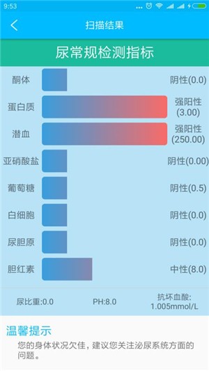 快速扫描解读自己的健康,清楚知道各种蛋白质、葡萄糖、胆红素等健康数据;