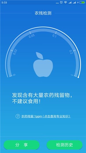 查看检测历史,最新的健康检测历史信息一目了然,检测数据可以分享好友;
