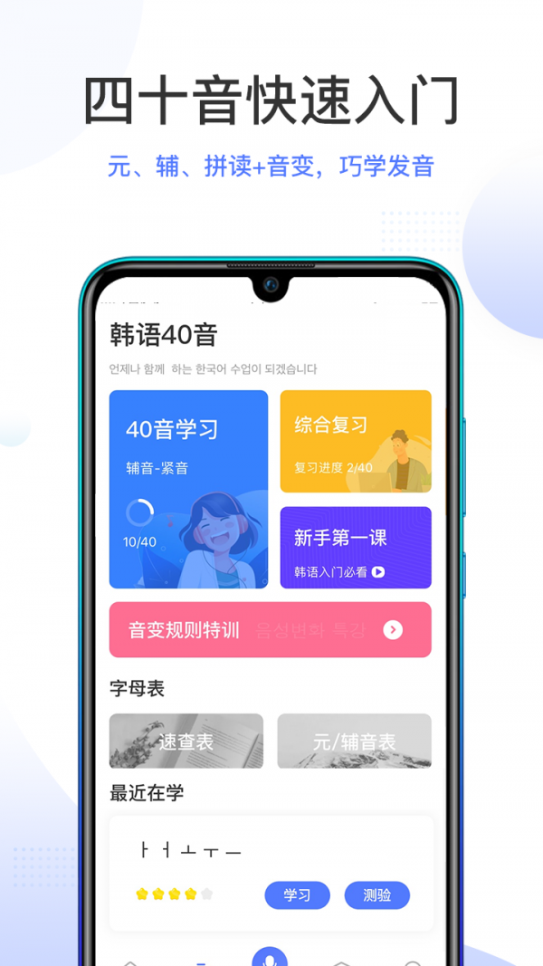 还提供丰富的趣味学韩语、单词、句型等知识点识记。