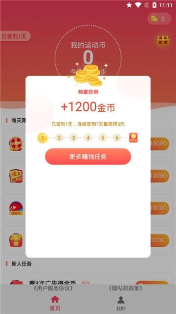 1、微信步数兑换金币,金币累计变现金,提取秒到账,赚钱方式更有趣