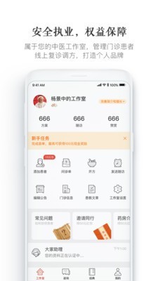-集成患者管理、问诊单、门诊信息卡片、方案制定、线上购药、随访复诊、代拍购药、疗效反馈等中医日常工作中常用功能。