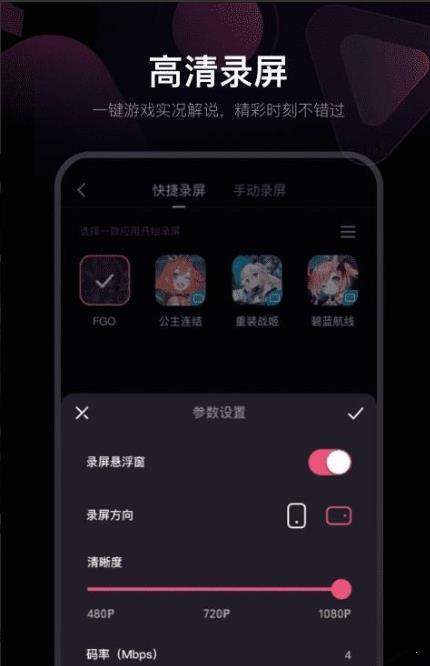4、快捷录屏,主流游戏,一键唤起录屏;