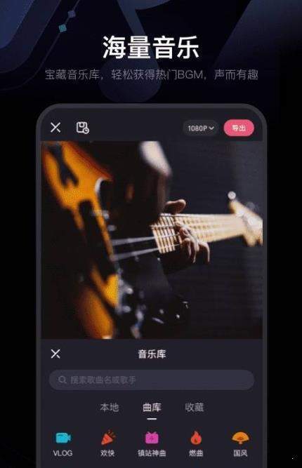 2、有丰富的背景音乐库,我们在剪辑的时候也可以来添加自己喜欢的背景音乐。