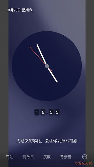 并且能够自由的更换皮肤,将时钟放置在主页上,随时都可以了解当前的时间,更具有待办事项的记录功能,很多优美的语句会让用户放松身心。