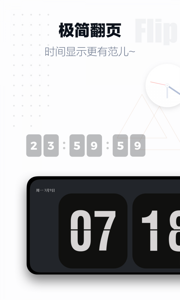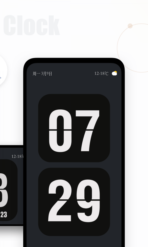极简桌面数字时钟,全面屏经典动态翻页效果,还自带日期、天气、温度,更有横竖屏切换体验,让您使用更舒适;