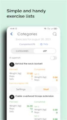 2.在力量练习中,您可以设置重量、接近次数和重复次数。