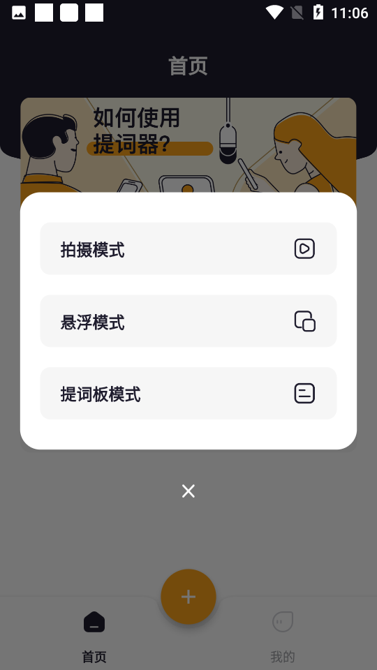 1.在软件中,有三种的提词模式可以让用户进行选择使用,包括悬浮模式、拍摄模式、提词板模式,三大主功能帮助用户轻松的解决忘词烦恼。